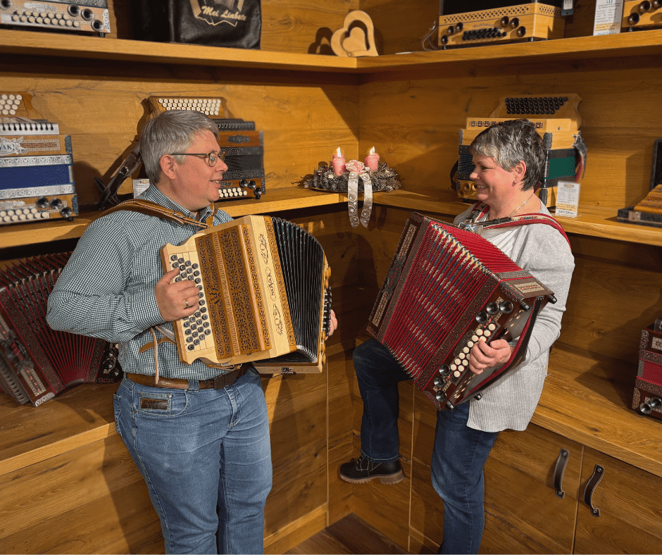In der Michlbauer Harmonikawelt bekommst du alles aus einer Hand: Steirische Harmonikas, Griffschrift Noten, Zubehör – und flexibel wählbaren Unterricht: vor Ort, in der Online Lernwelt oder in der neuen App. Auch Einsteiger starten risikolos mit einer Miet-Harmonika.
