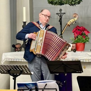 Im Anschluss spielte das Harmonika-Orchester der Musikschule Wettenberg-Harmonikaschule unter der Leitung von Chris Reinhardt den ersten Teil der Michlbauer-Advent-Messe. Unterstützt wurde das Orchester durch den Männerprojektchor Arion Kleinlinden und der Sängervereinigung Germania Eintracht Wißmar.