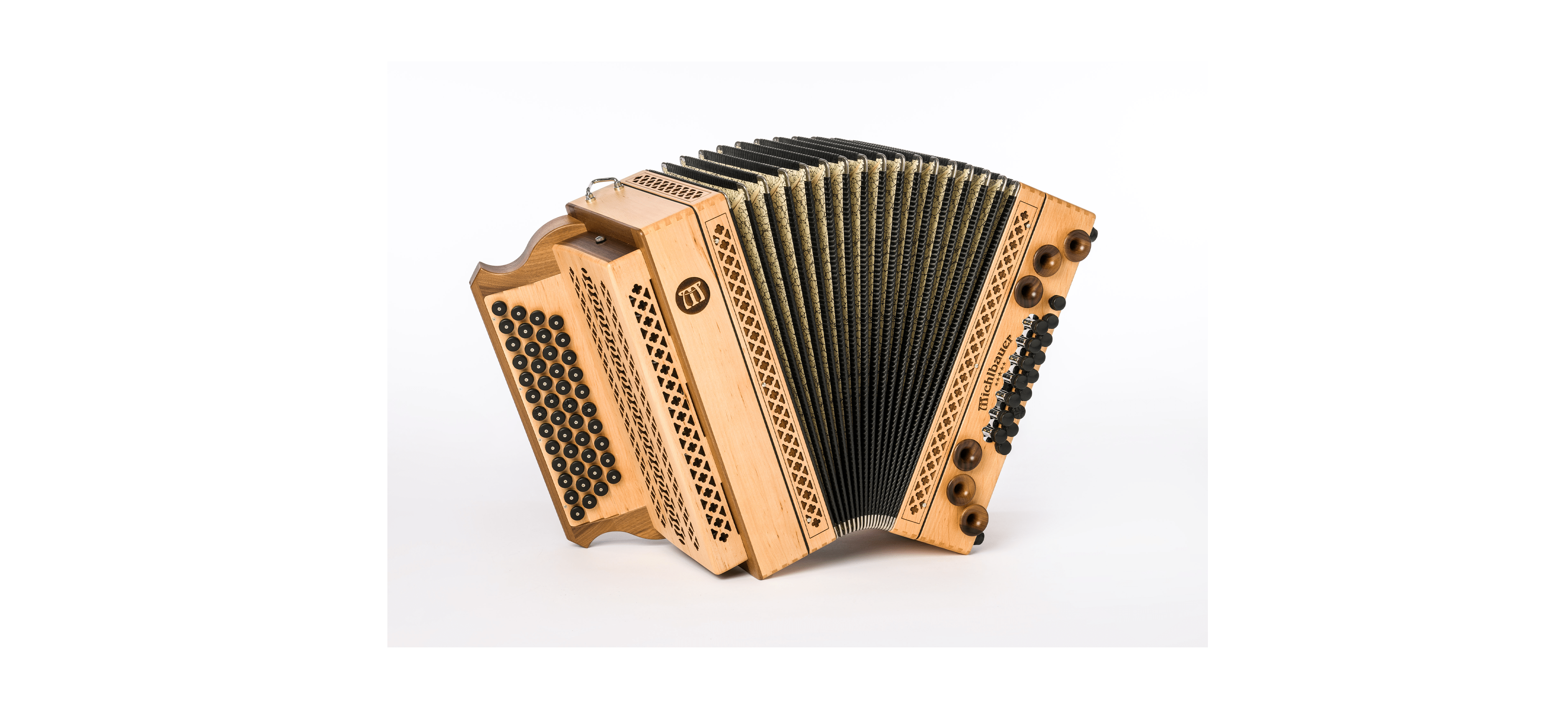 - Aufbau & Funktion: Die Steirische Harmonika zählt zur Familie der Handzuginstrumente. Handzuginstrumente verfügen über eine Melodieseite, einer Bassseite für die Begleitung und einem Balg. Im Balg befindet sich die Luft, mit der die Stimmzungen der Harmonika zum Schwingen gebracht werden. Die Tonerzeugung erfolgt durch schwingende Stimmzungen aus Metall, die auch einer Stimmplatte befestigt sind. Das Prinzip dieser Tonerzeugung ist bereits mehr als 3.000 Jahre alt und geht zurück auf das chinesische SHENG, einer Art Bambusflöte.