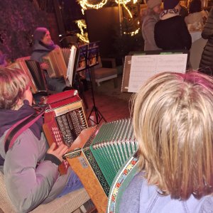 Für die jungen Musikerinnen und Musiker bot sich eine wunderbare Gelegenheit, die einstudierten Weihnachtslieder und alpenländischen Weisen vor einem großen Publikum zu präsentieren. Bei Glühwein und zahlreichen kulinarischen Köstlichkeiten zeigten sich die Besucherinnen und Besucher sehr begeistert von den Darbietungen der Harmonikaschüler.