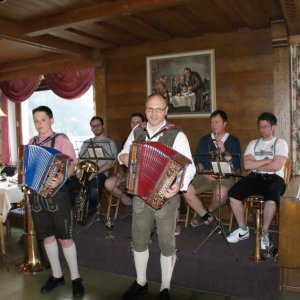 Als ich selbst Geld verdiente, kaufte ich mir eine gebrauchte „Novak-Harmonika“ und ging zu meinem Onkel Hans, um einige Grundgriffe auf der Steirischen zu erlernen. Ein professioneller Musiklehrer für die Steirische war zu dieser Zeit leider nirgends zu finden! Ich brachte mir das Harmonikaspielen zum größten Teil also selbst und nur nach Gehör bei. Im Zillertal gibt es ja eine Unzahl von Tanzmusikgruppen. Zu dieser Zeit waren die „Zillertaler Schürzenjäger“ die Topgruppe, und eigentlich wollte jeder genauso gut sein wie sie. So kam es, dass ich mit Kollegen Anfang der 90iger Jahre die Tanzkapelle „Zillertaler Jagerbuam“ gründete und mit ihnen ca. 10 Jahre auf der Bühne stand.
